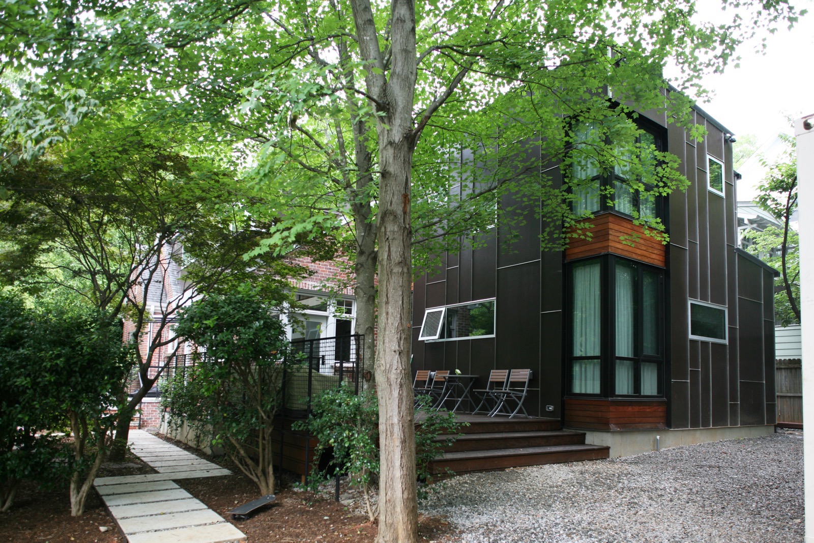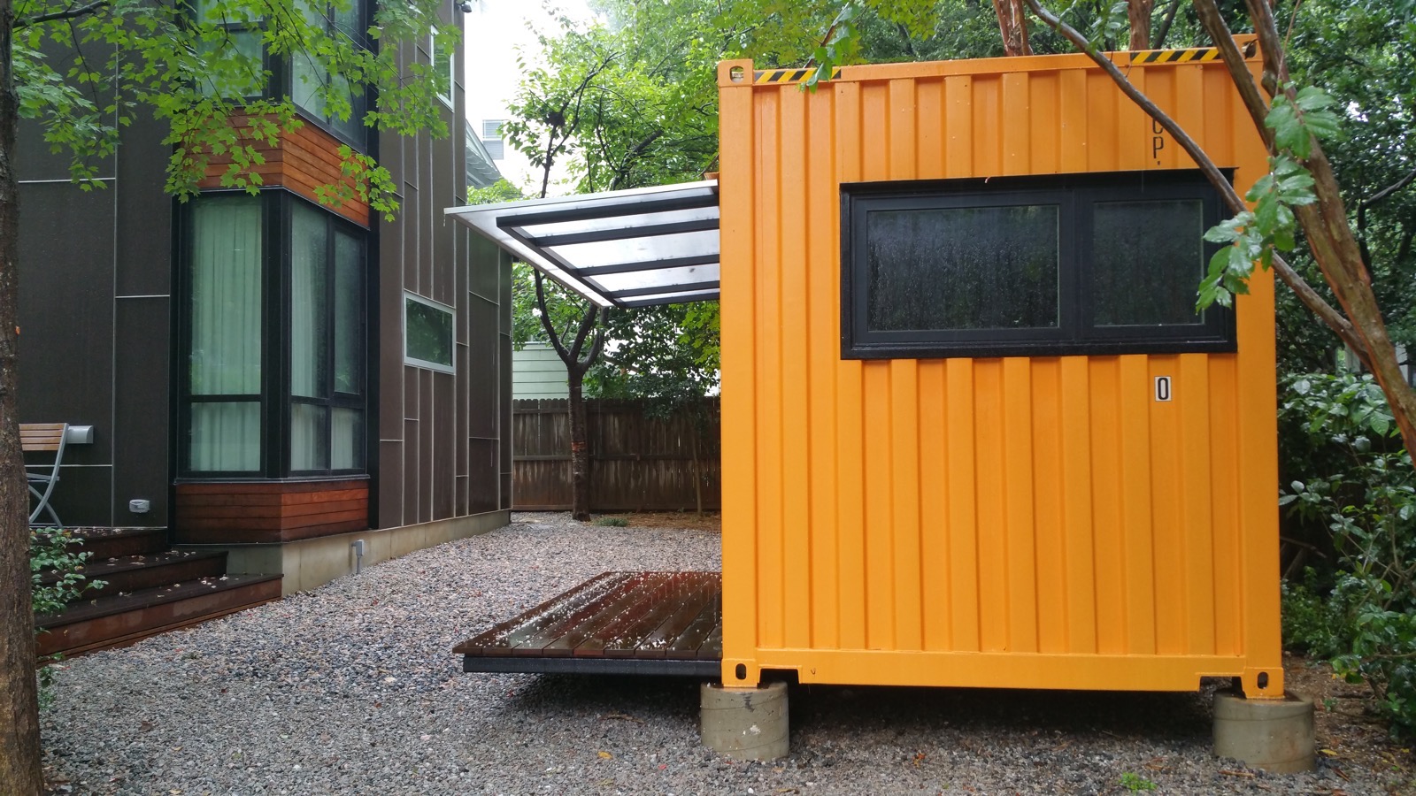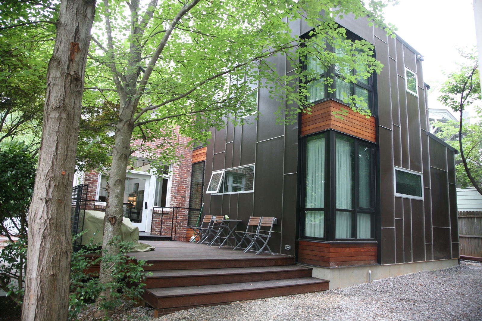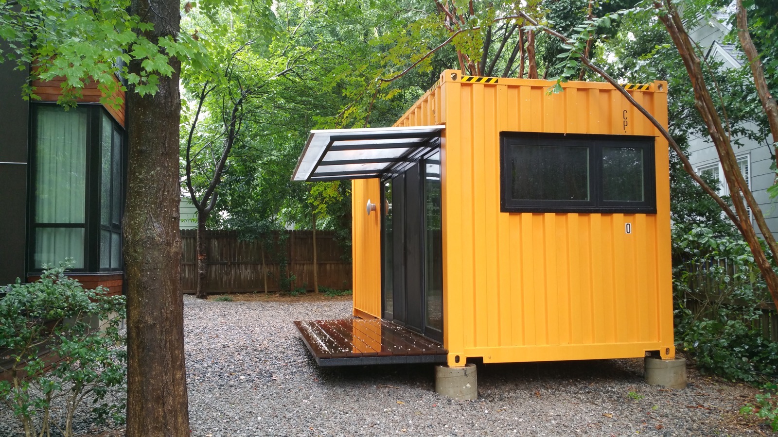 Whole house renovation with modern addition to historic cottage home with a shipping container accessory structure
