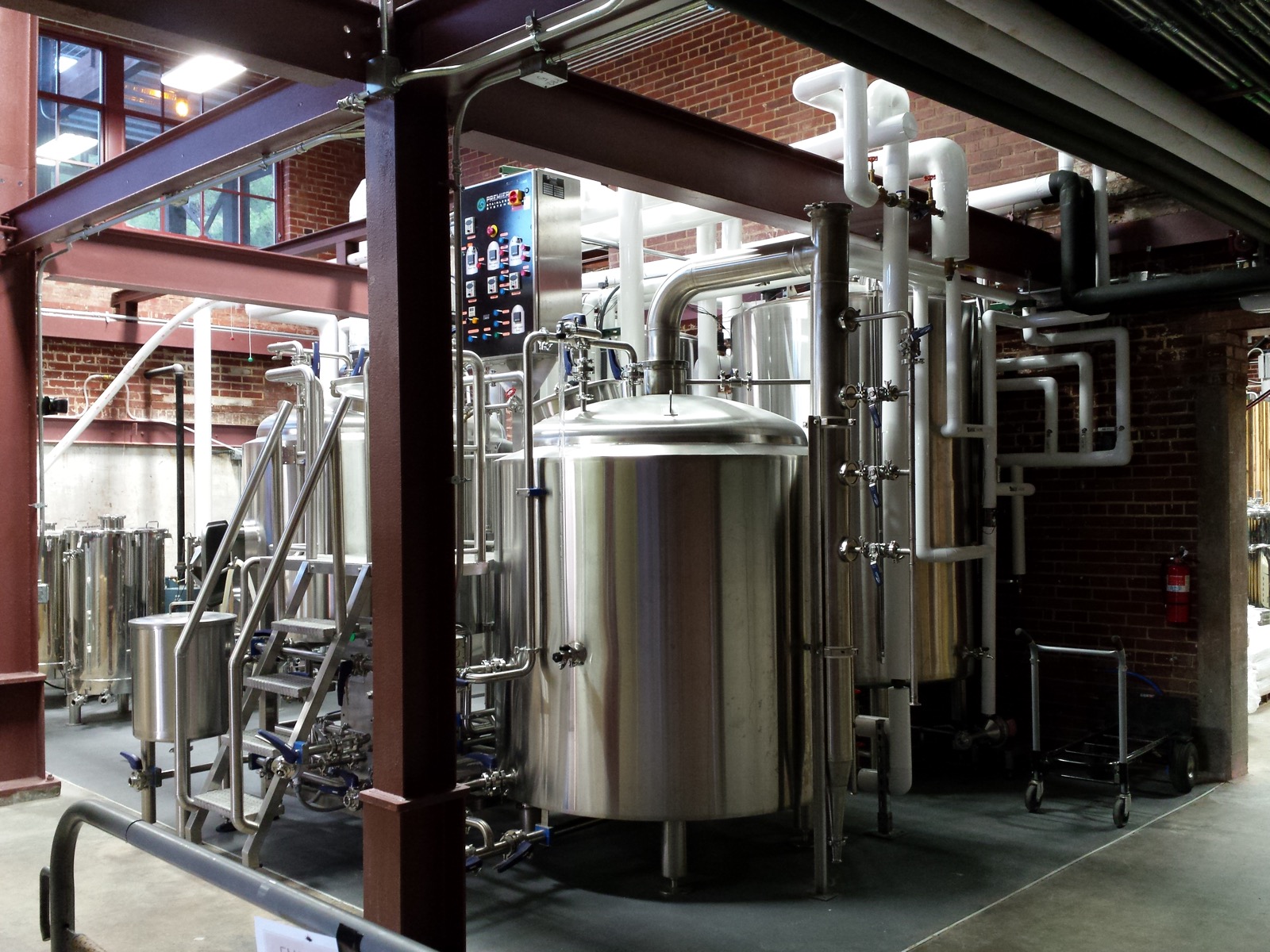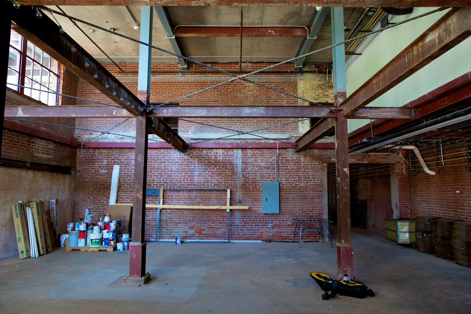 Adaptive reuse project adding a brewery and tasting room to the historic textile mill building in Saxapahaw