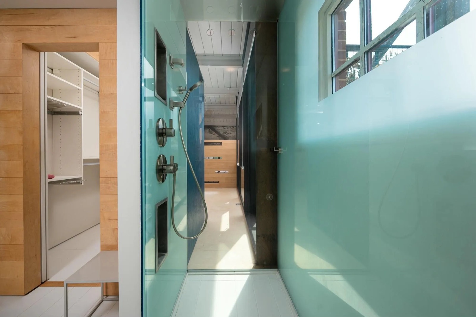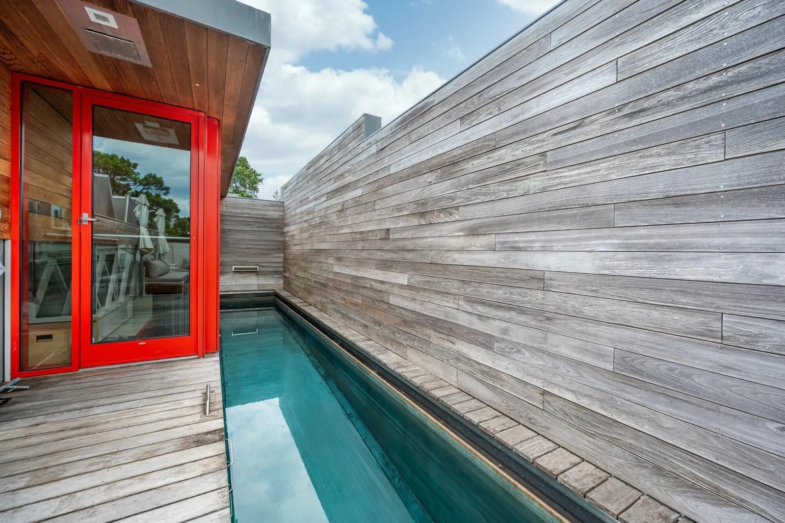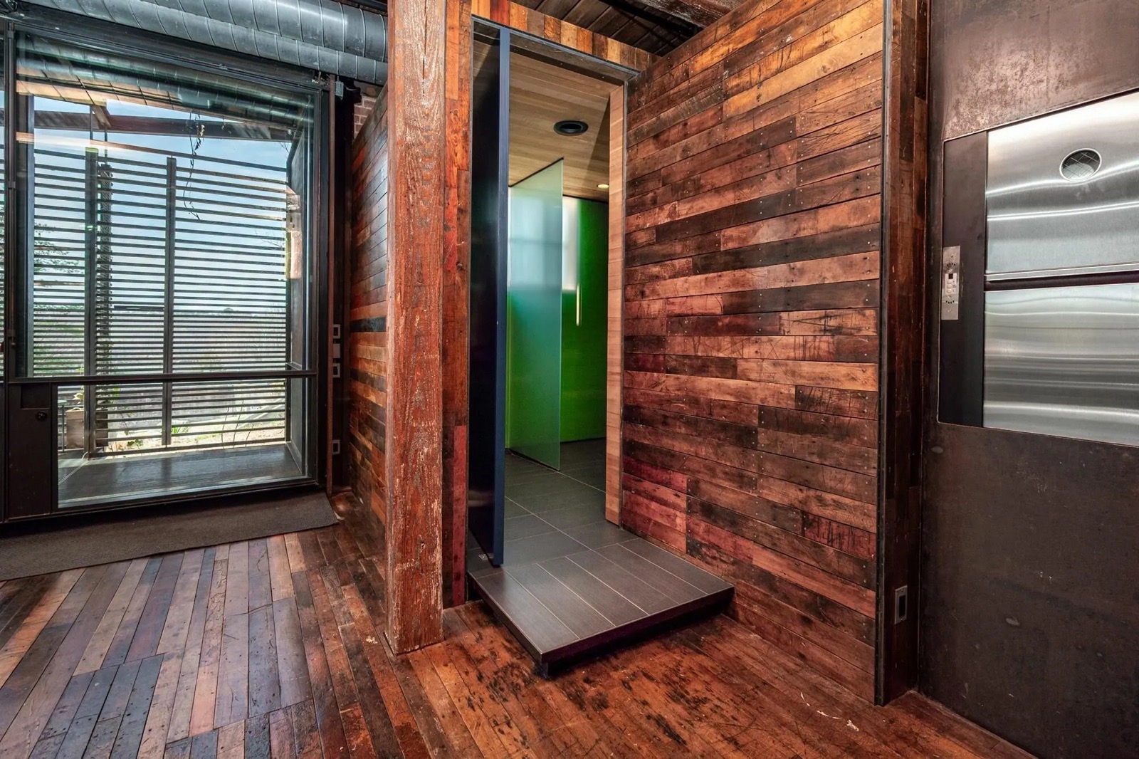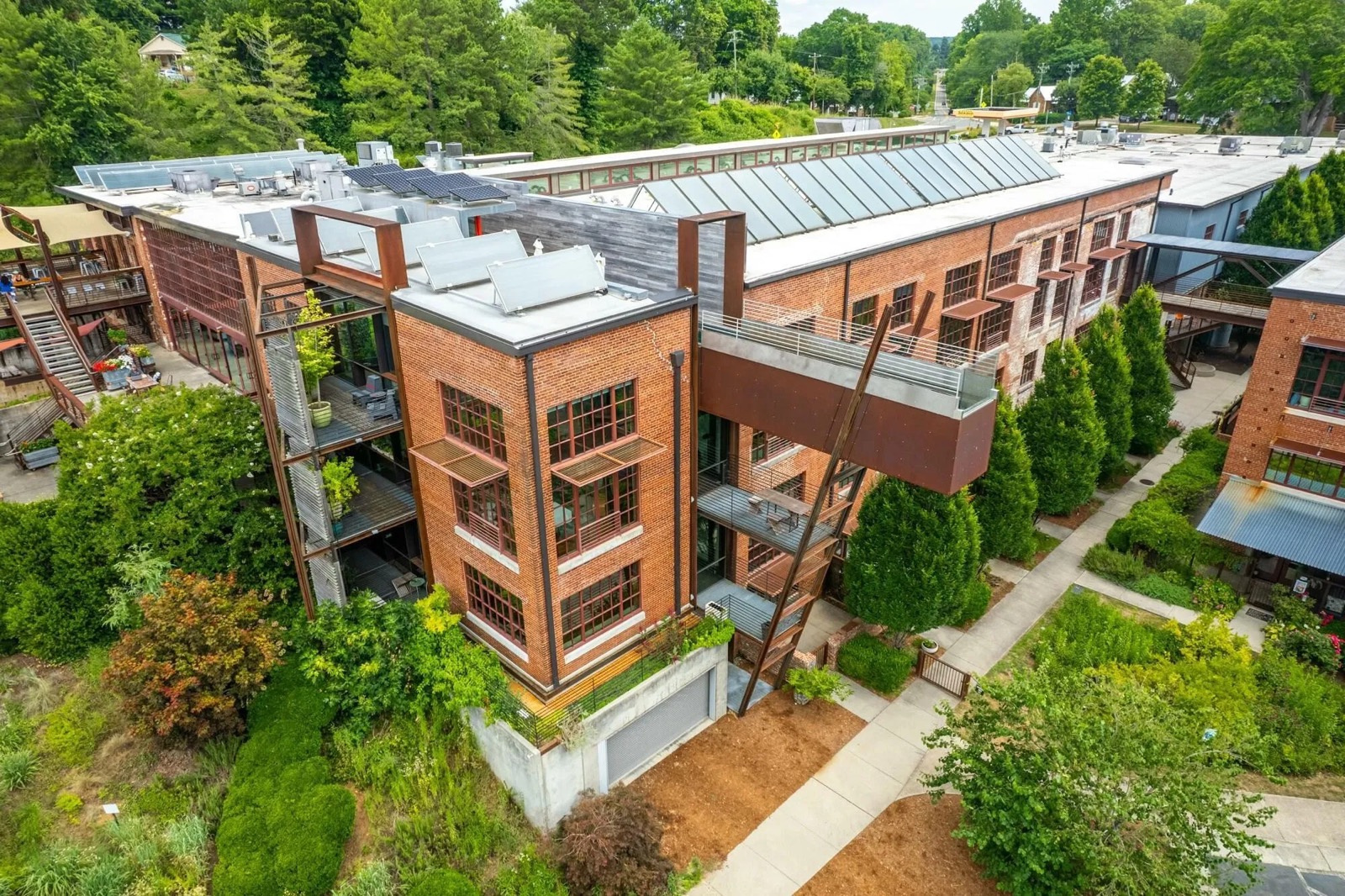Adaptive reuse renovation project adding a private residence and swimming pool to the historic textile mill building in Saxapahaw